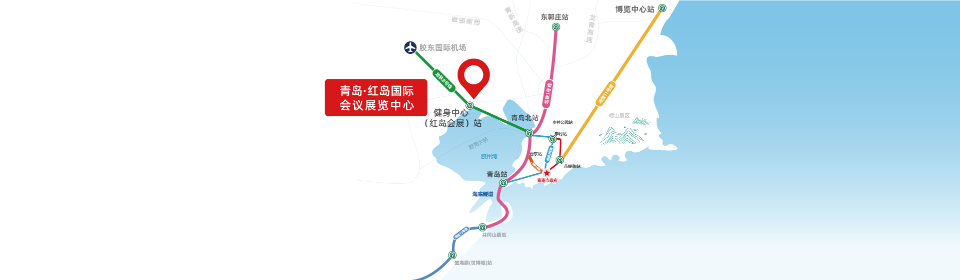 青島北站—大洋站—紅島科技館(方特站)—觀濤站—健身中心(紅島會(huì)展中心站)—健康中心站—紅島火車站—大澗站—膠東站—膠東機(jī)場(chǎng)站。